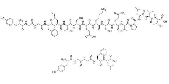 Enkephalins, like endorphins, are part of the body's intrinsic opioid system. They bind to opioid receptors in the brain and spinal cord to help control pain and modulate bodily responses to stress and relaxation.